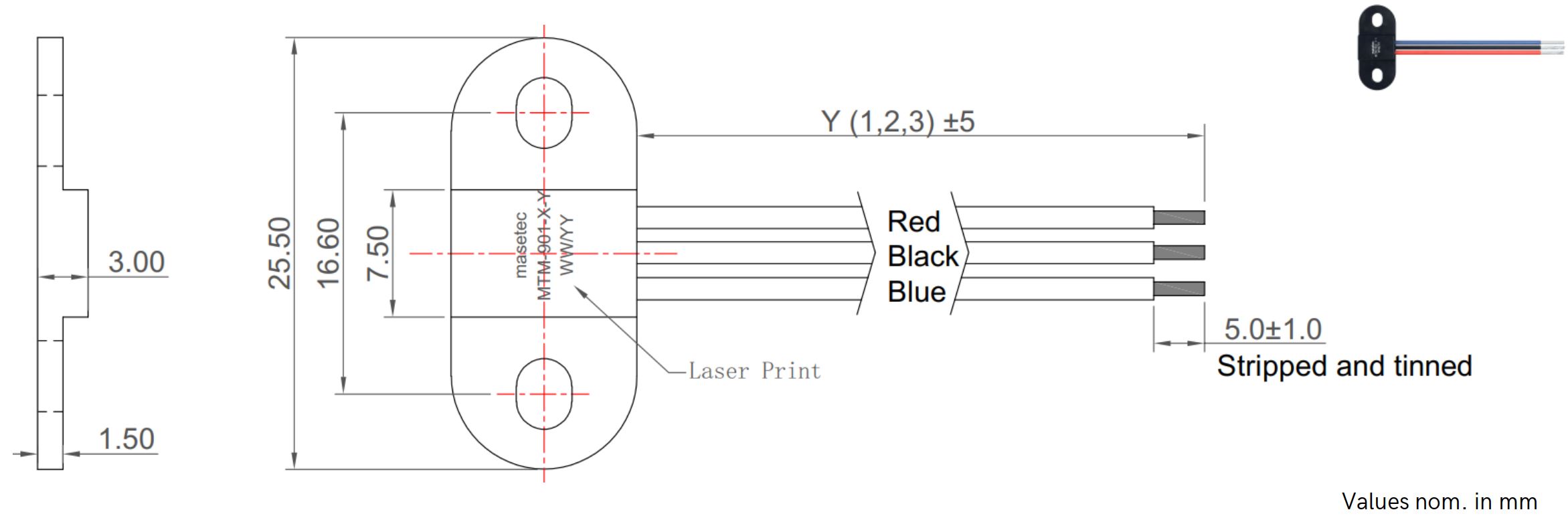 Dimensions: L 25.5 × W 11.0 × H 3.0 mm