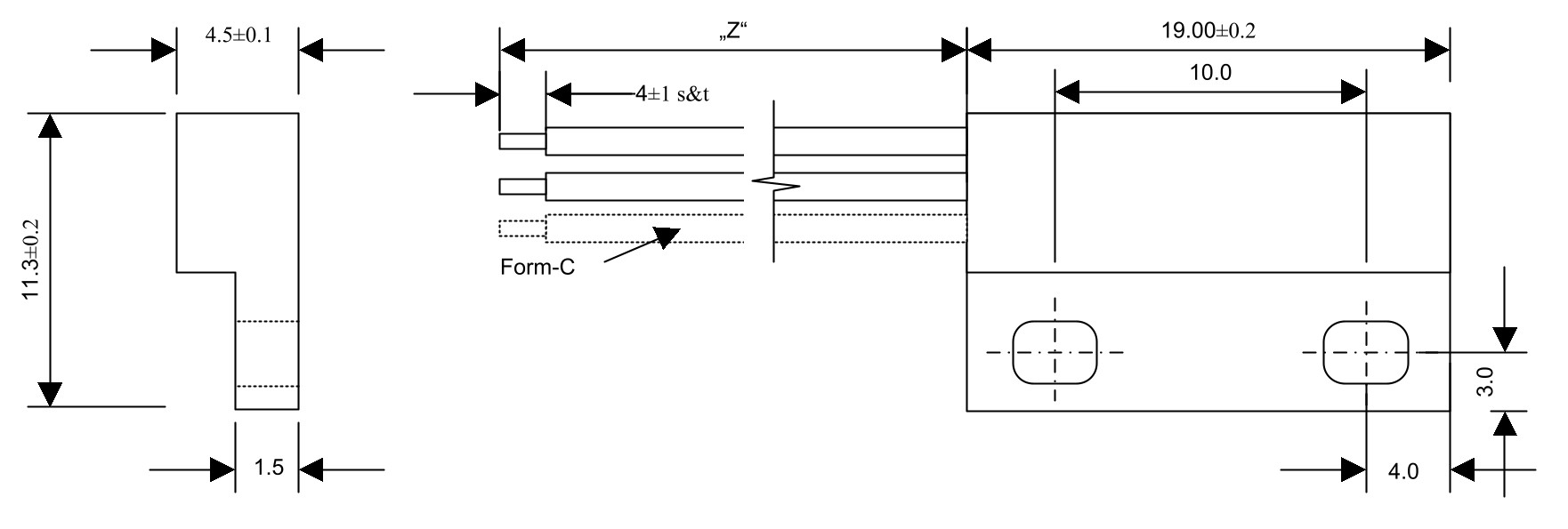 Dimensions: L 19 × W 11.3 × H 4.5 mm